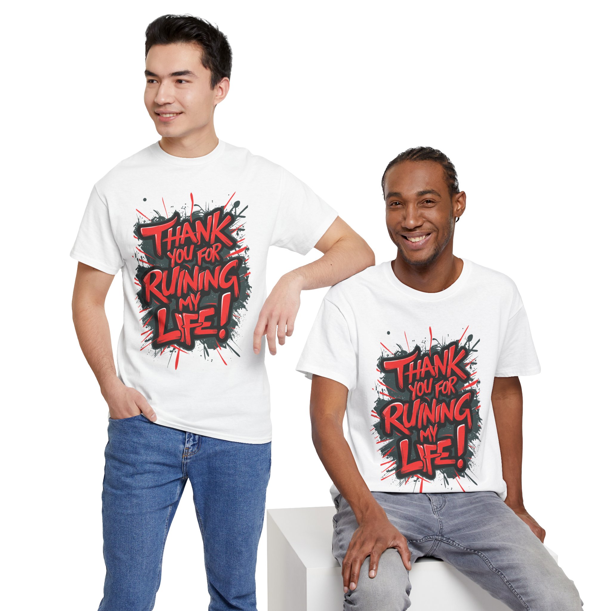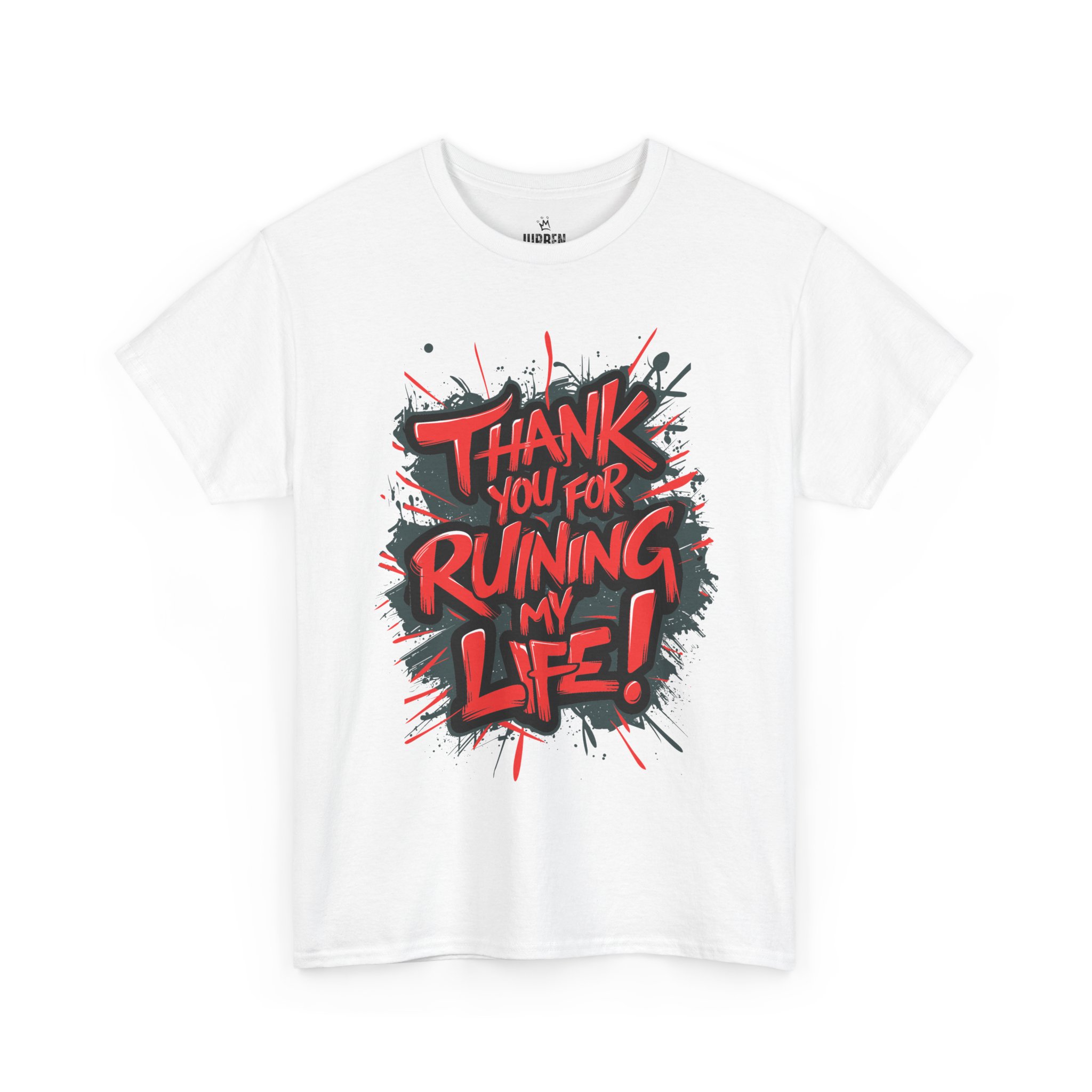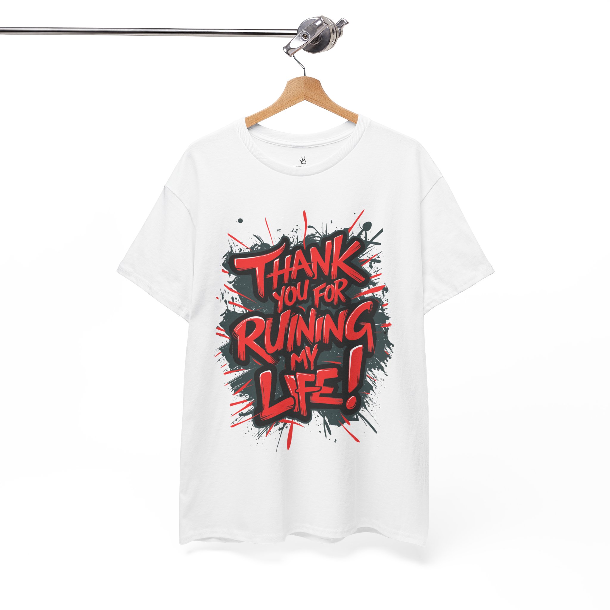 Turn heads and express raw attitude with the “Thank You For Ruining My Life” Graphic T-Shirt — a bold piece made for those who don’t hold back.
