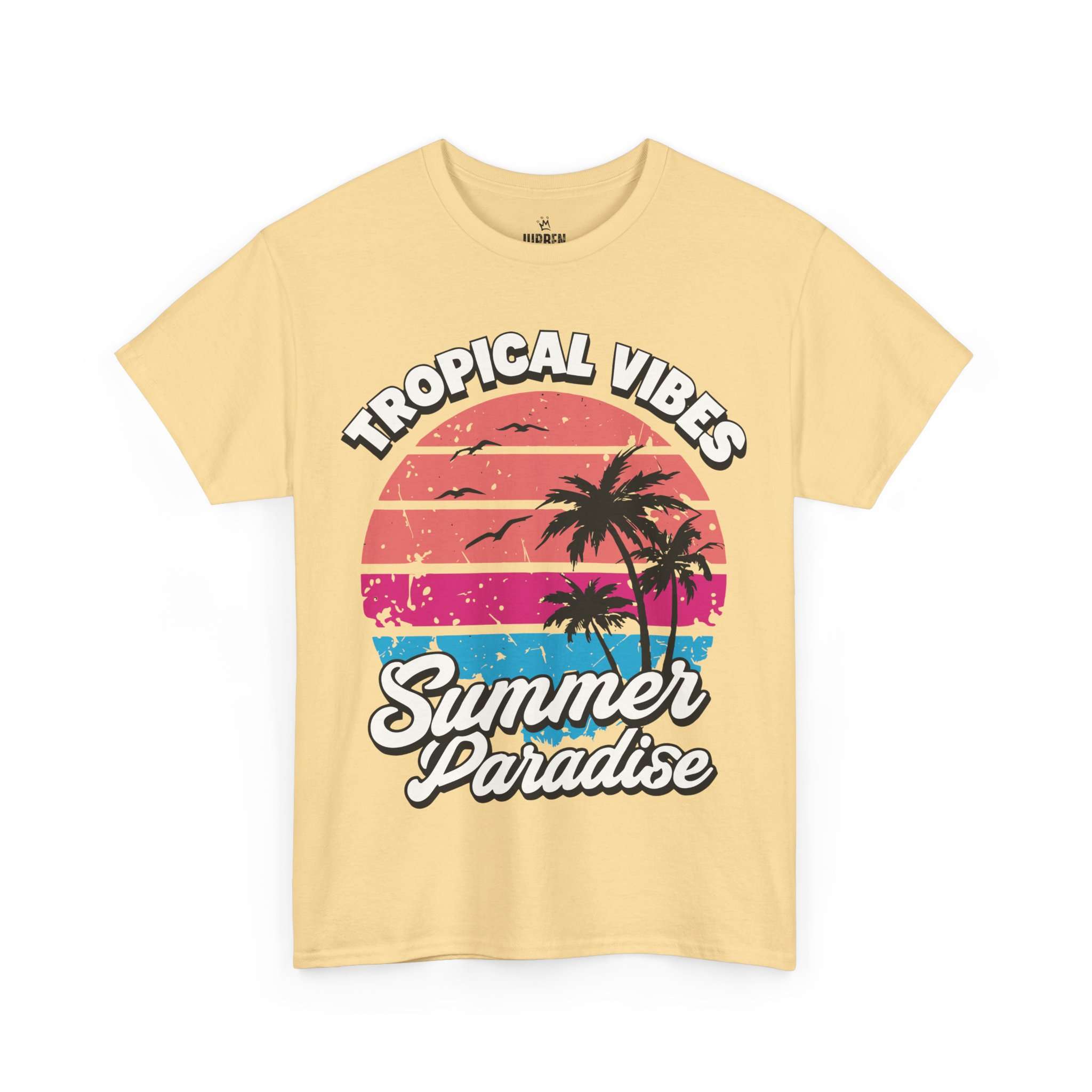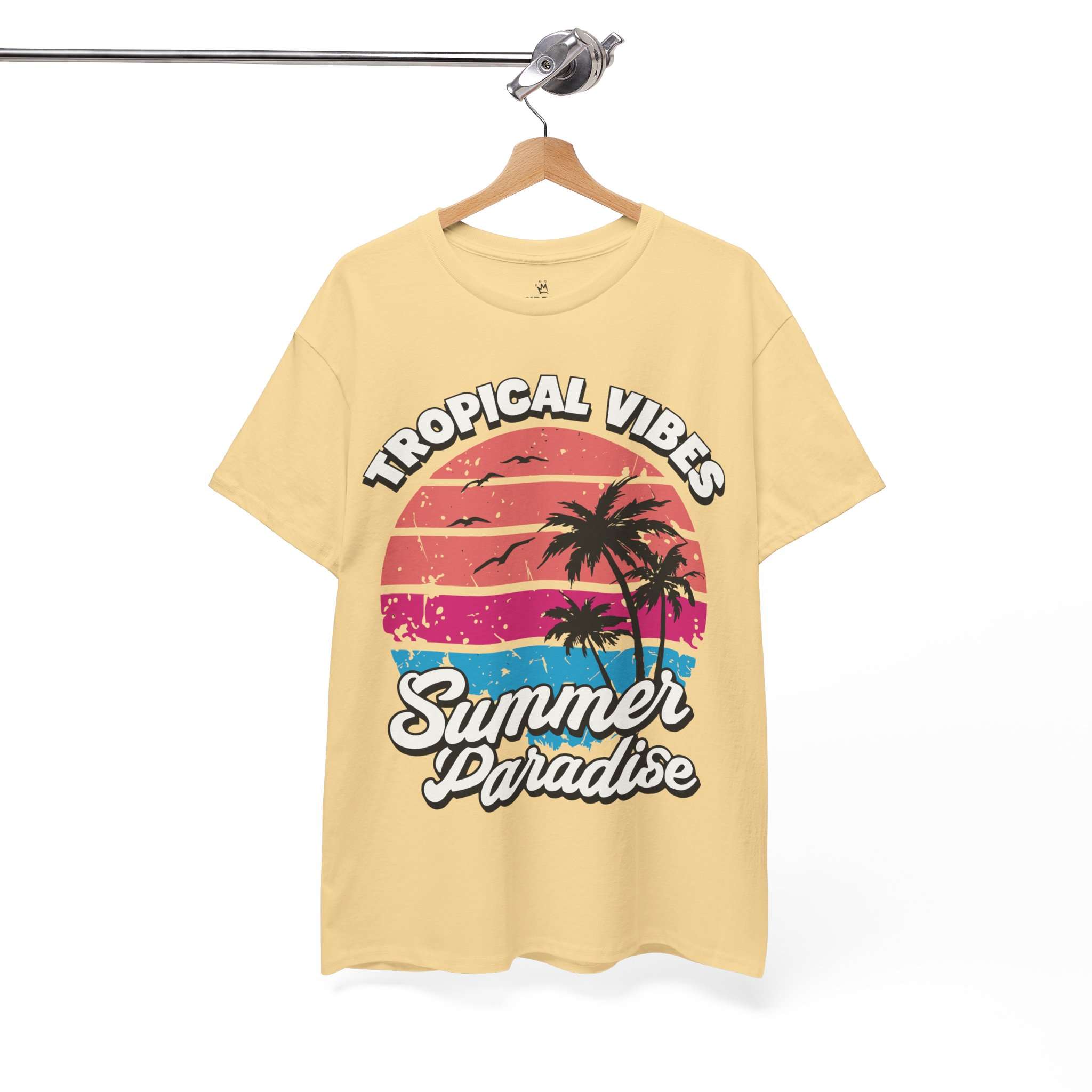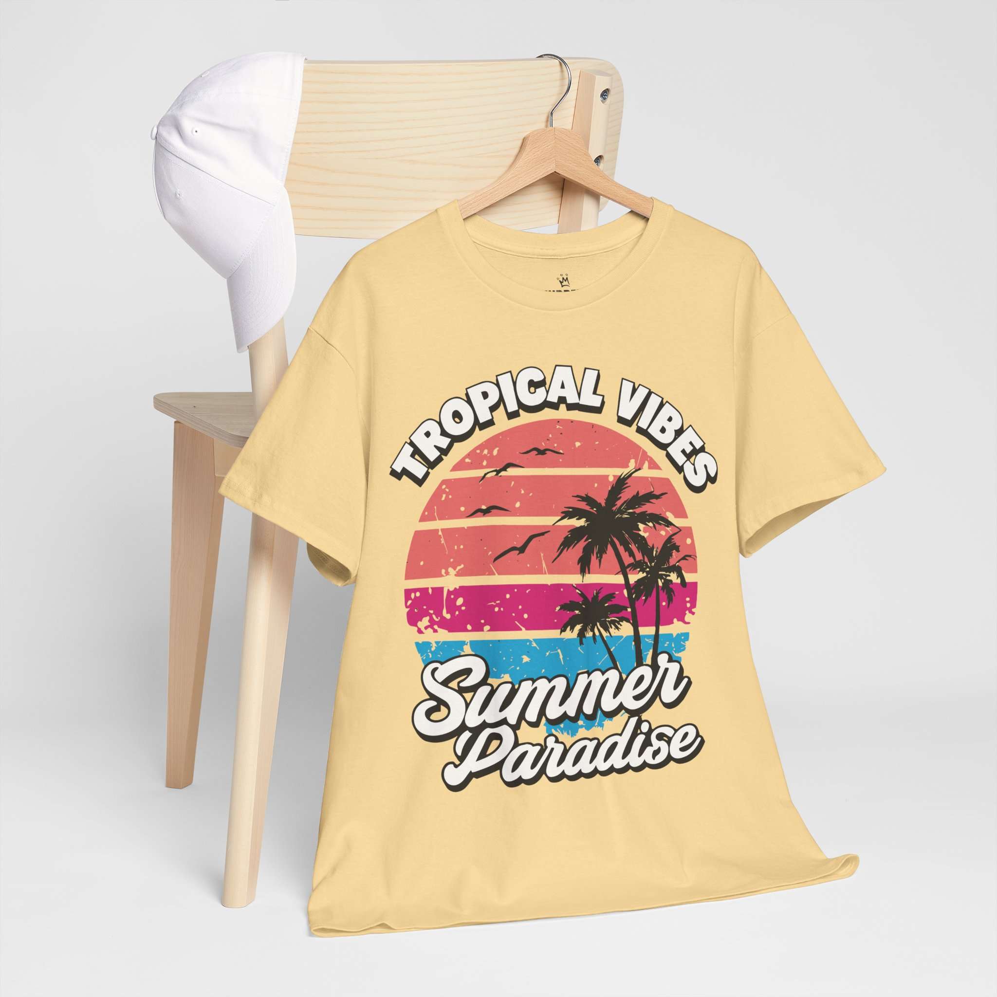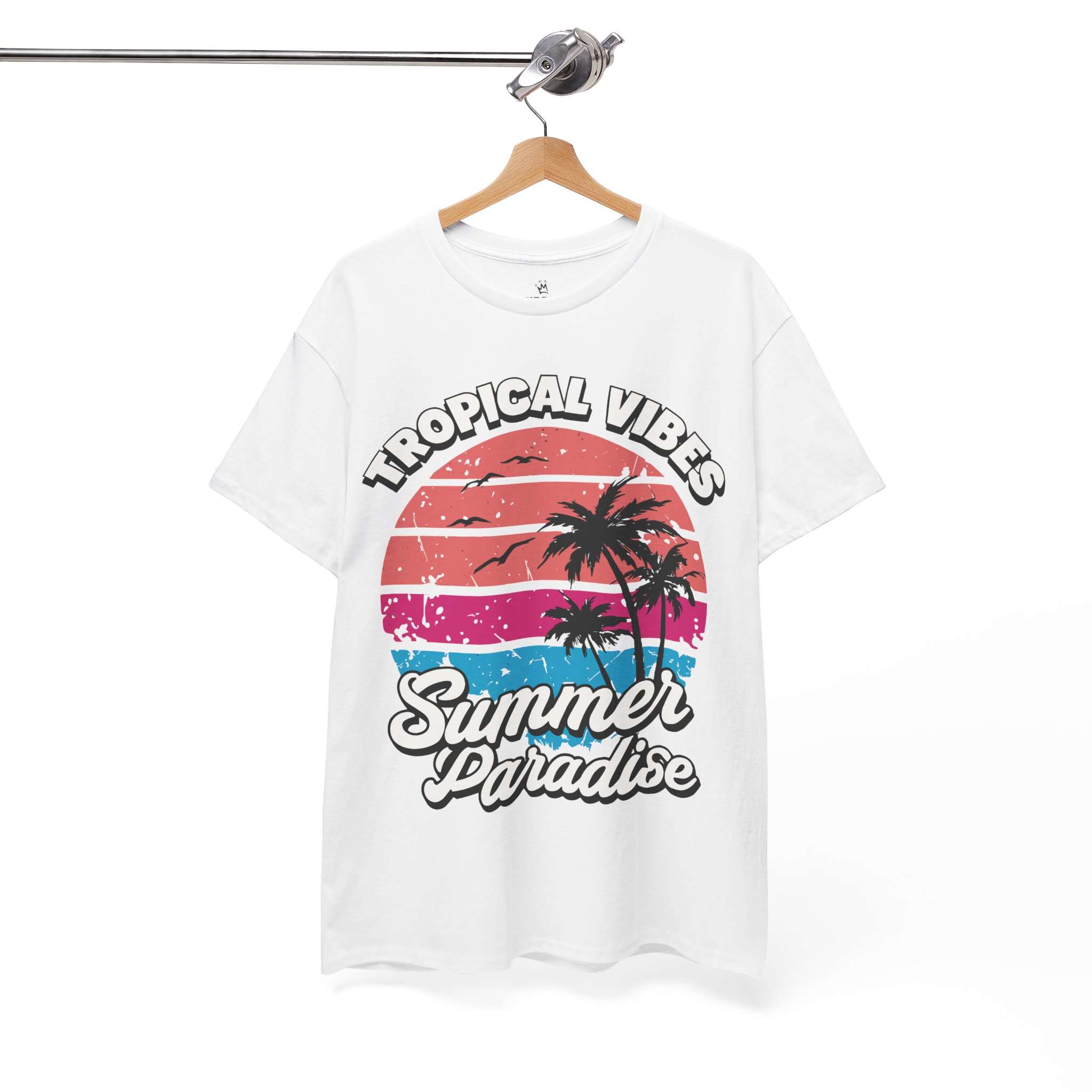 Bring the tropical vibes wherever you go with this Tropical Vibes Summer Paradise t-shirt! Featuring a retro sunset with palm trees and ocean colors, this tee is perfect for summer lovers, beach vacations, and those who enjoy a relaxed island lifestyle.