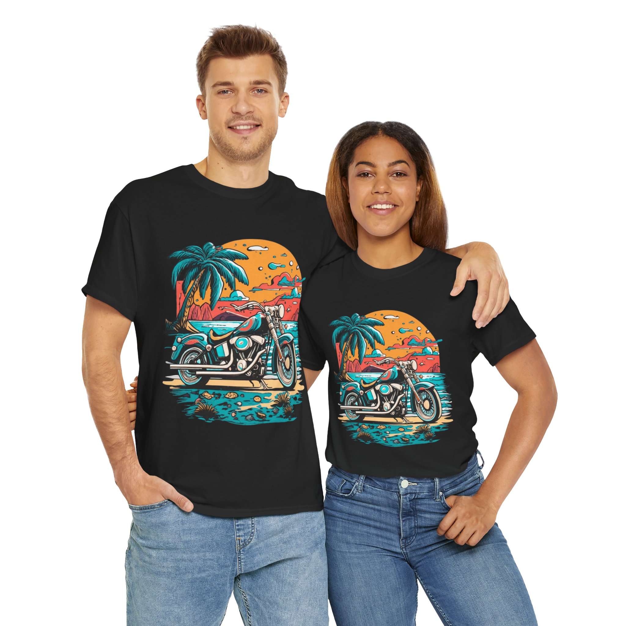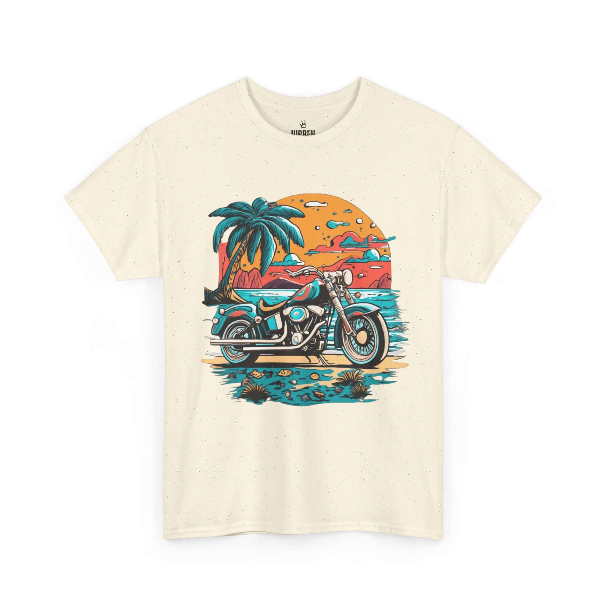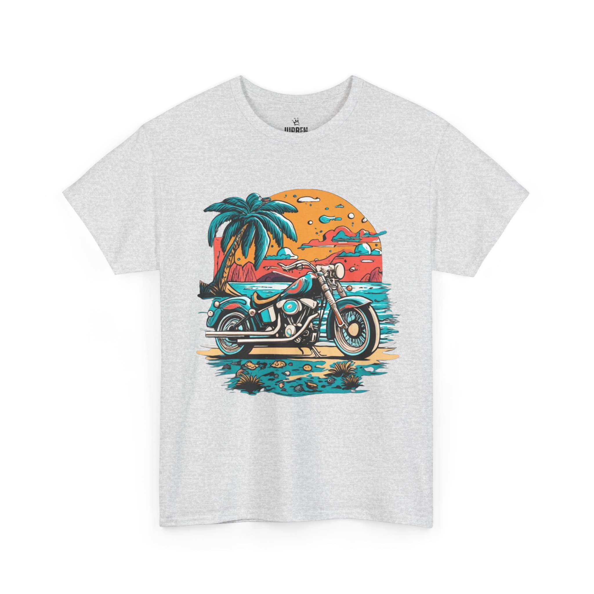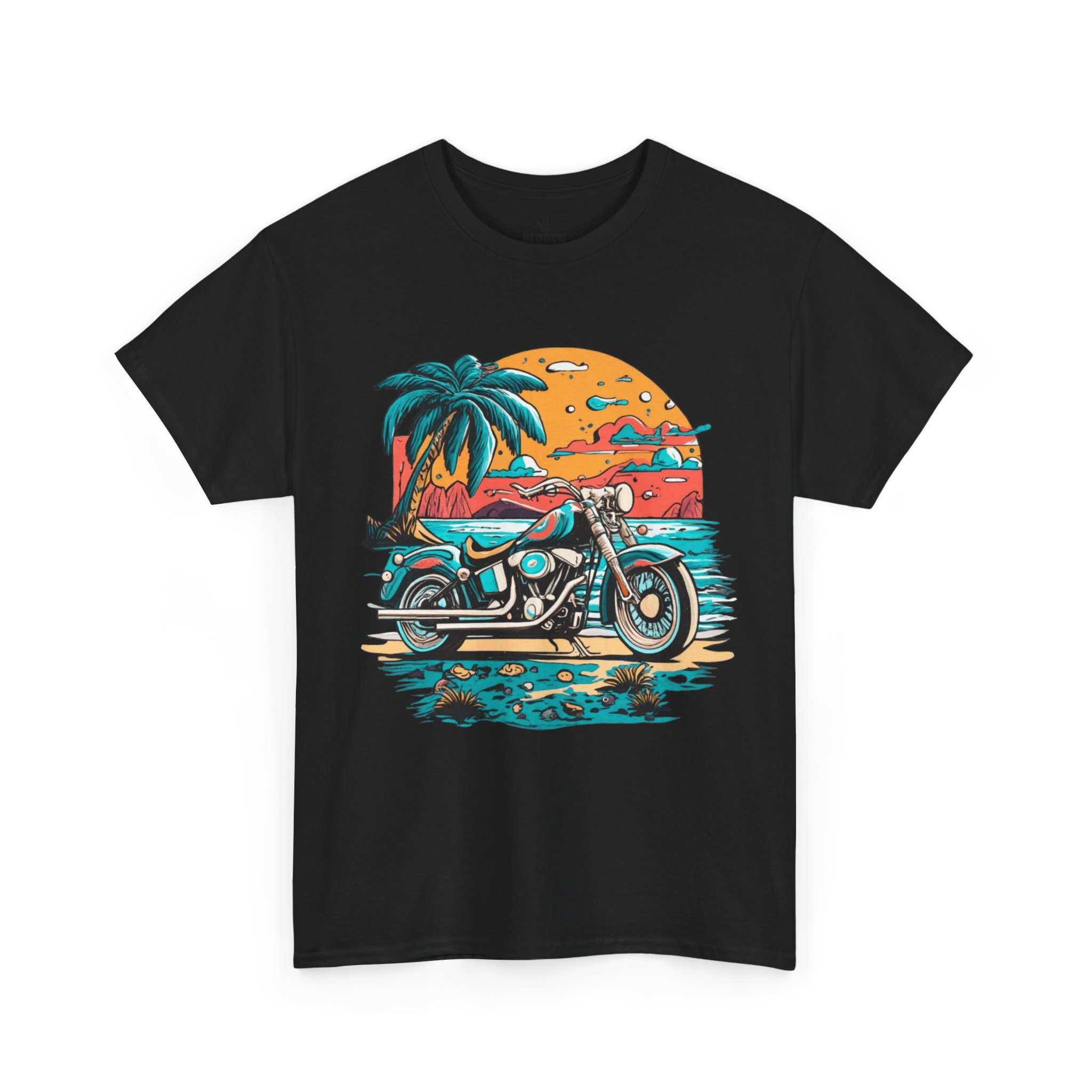 Cruise into paradise with this Vintage Motorcycle Beach Sunset T-Shirt, featuring a retro-style graphic of a classic chopper parked by the ocean, palm trees swaying, and a vibrant sunset backdrop. A perfect blend of freedom, adventure, and summer vibes.
