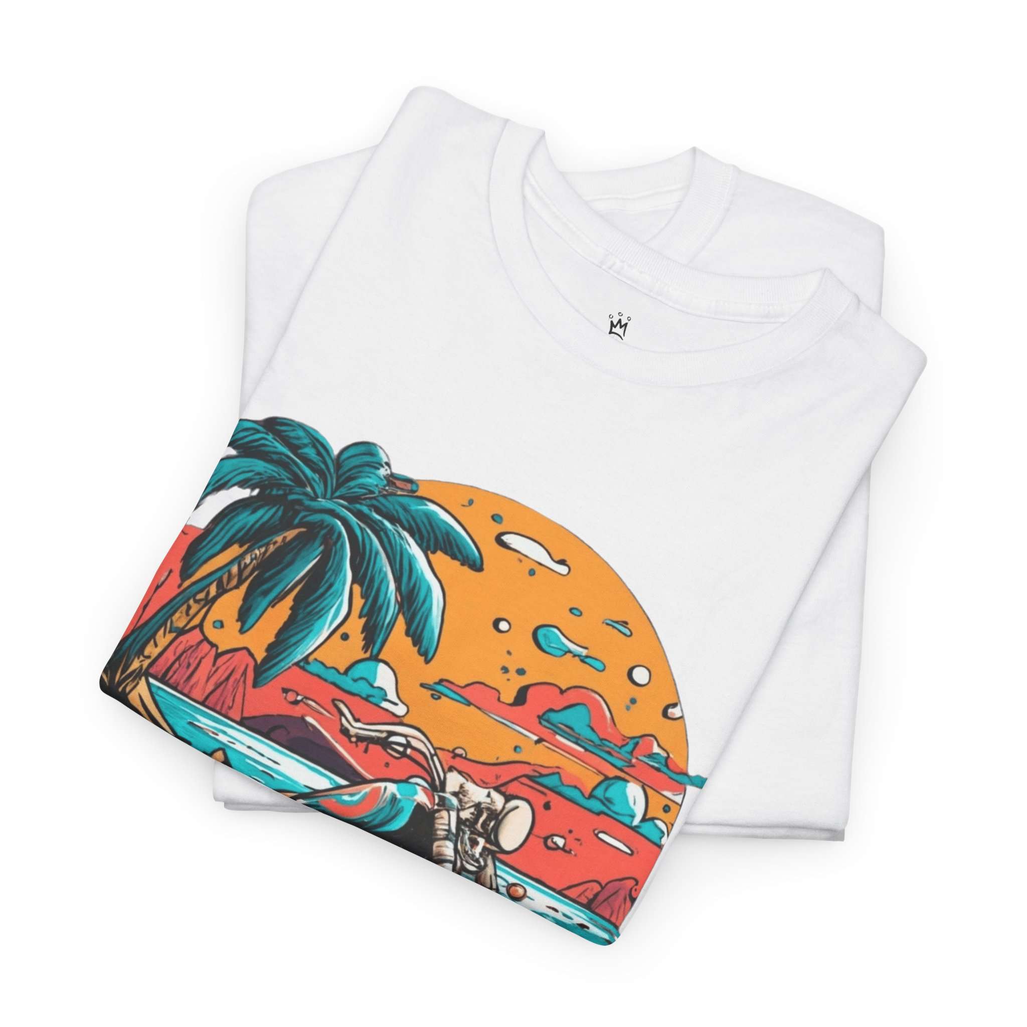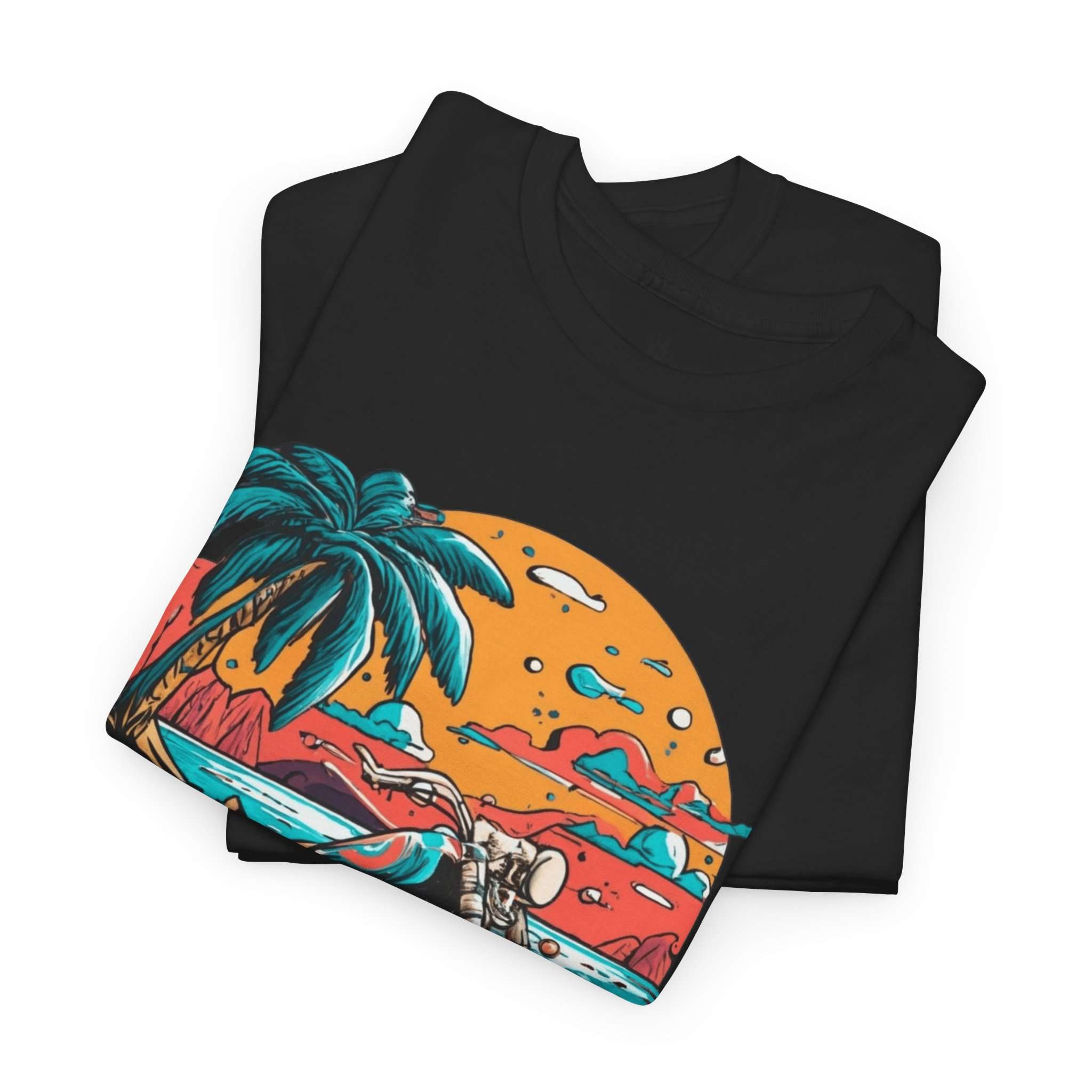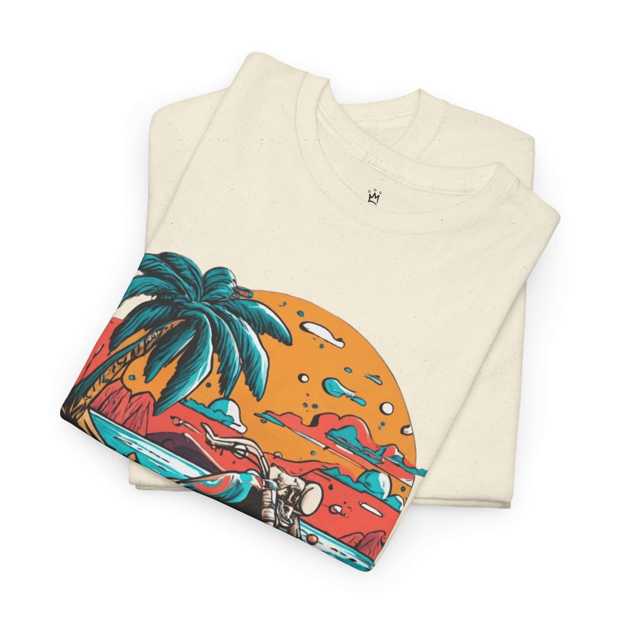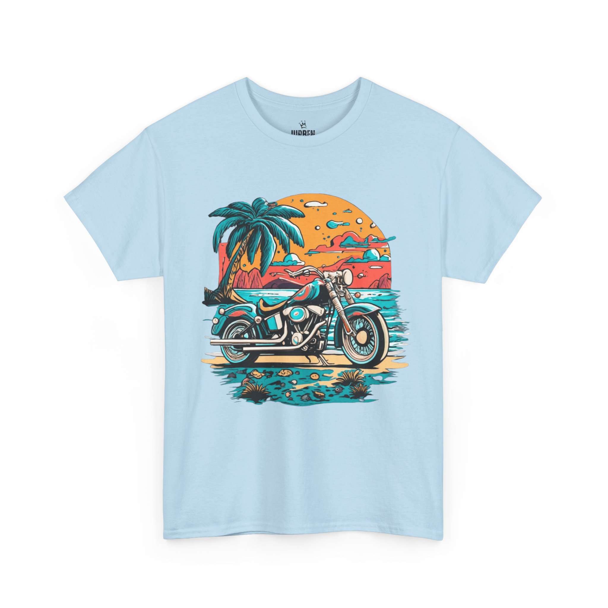 Cruise into paradise with this Vintage Motorcycle Beach Sunset T-Shirt, featuring a retro-style graphic of a classic chopper parked by the ocean, palm trees swaying, and a vibrant sunset backdrop. A perfect blend of freedom, adventure, and summer vibes.